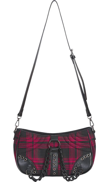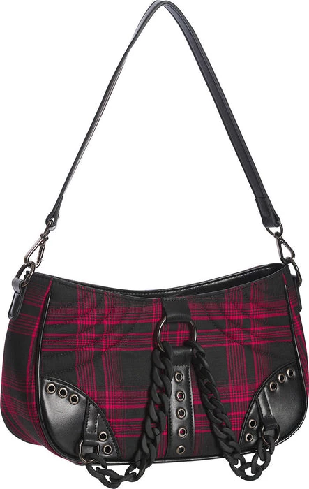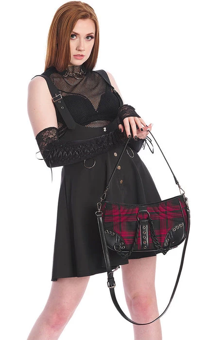 Wanting a super grunge yet practical handbag to fit all your necessities? Well the Earthworm chain handbag is just what you need! This stunning black and red tartan handbag has the coolest chain and eyelet details perfect to add a little bit of gothic flair to your casual outfits with no extra trouble!Β