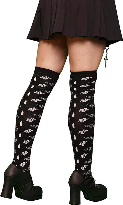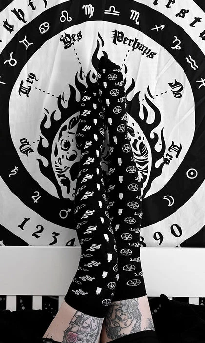 “Oh relax, it’s only magic!” Kick back and relax in these super comfy Knee high The Craft X Beserk socks featuring white symbols contrasted on black. Pair these babies with an iconic The Craft X Beserk t-shirt, black pleated skirt, Knee highs and some bad-ass combat boots to complete your full witch outfit!