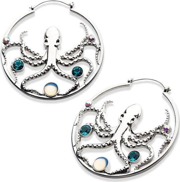 Rule the deep seaΒ with these Blue Zircon & White Opalite Silver Plated Octopus Plug Hoops.