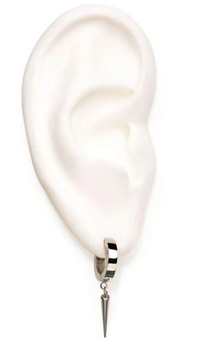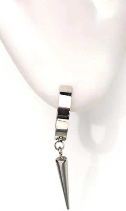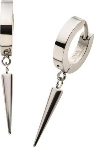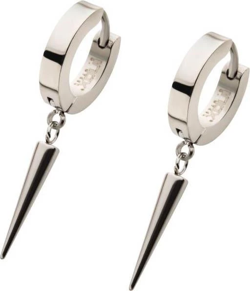 Stainless Steel Huggie with Cone Dangle Earrings.