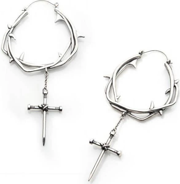These badass Twisted Thorn Cross plug-friendly hoops have surgical steel posts and not only have an awesomely detailed hanging cross, they’re also framed with a dangerously enchanting chain of vines! All hail these original plug hoop earrings…perfect for everyday wear- if you dare. Which we know you will!