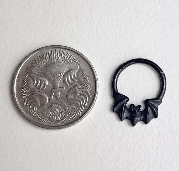 This Batty Septum Clicker will make your dark heart flutter! Perfect for your Septum, Helix, Daith, Conch, or Lobe piercings.