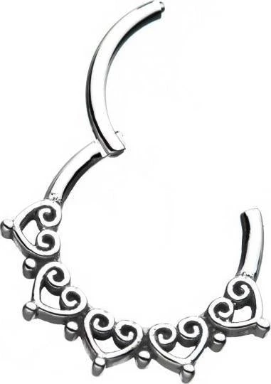 Surgical Steel Heart Hinged Segment Rings. Sold individually. The hinge on this specific design allows the wearer to never lose a small segment piece again and it has that easy snap seamless fit. Perfect for Helix, Septum and Cartilage.