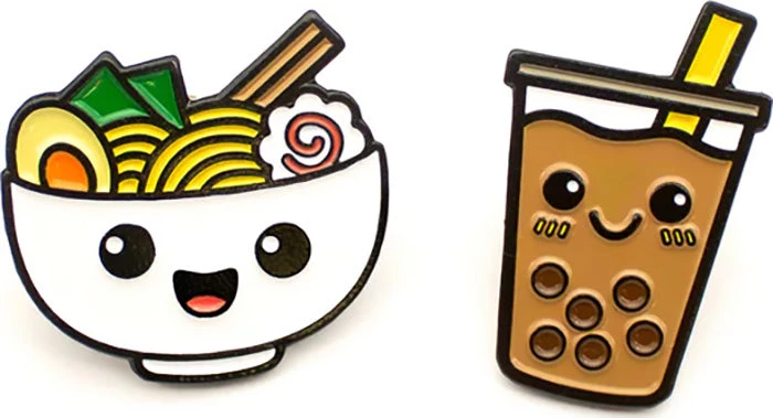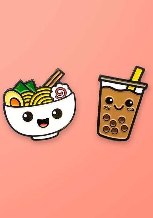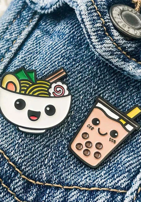Perfect gift for foodies or anyone who loves ramen and boba teas! Keep them both for your jean jacket or share one with your bestie.