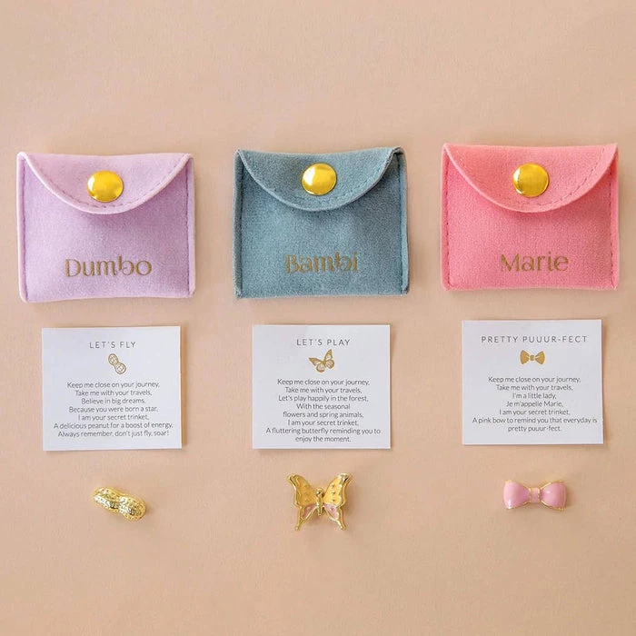 Each of the Disney x Short Story Trinkets have been thoughtfully created to inspire daily positive reminders and to serve as a lucky charm. These Disney Trinkets come in their own buttoned suede pouch and story card ready to be gifted as a gorgeous keepsake.