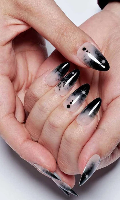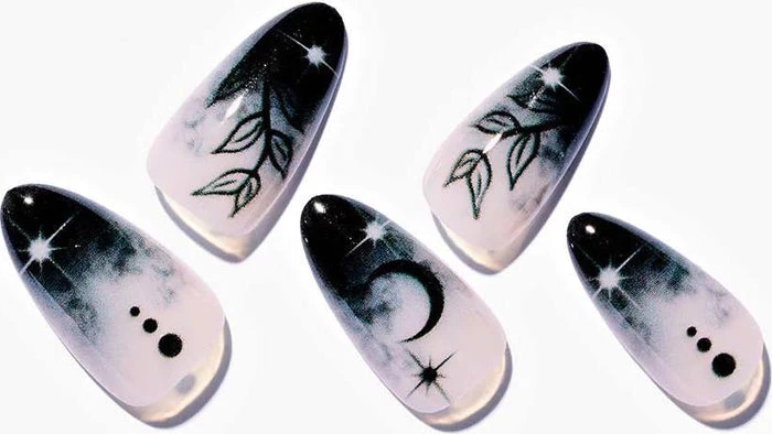 Who doesn’t love a pink x black combo?! I know we do!Β Add a little bit of mystery to your everyday look with the Leaves Under Moonlight Nails.Β