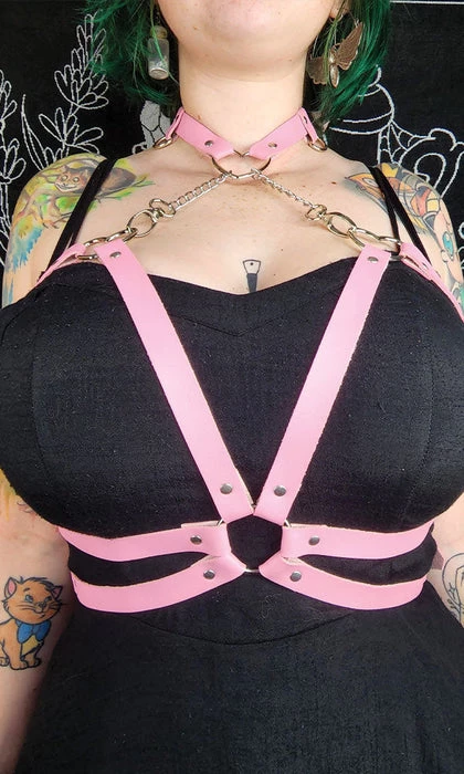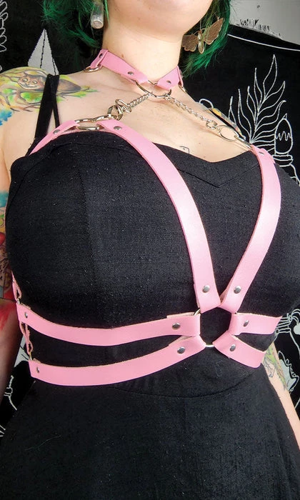Hey lover~ Wanting to look fierce and kawaii at the same time? The Astaroth harness has got you covered! This sexyΒ pink faux leather harness features the cutest silver hearts and chains making this the perfect closet staple!Β