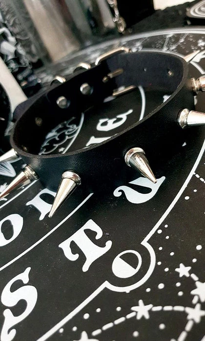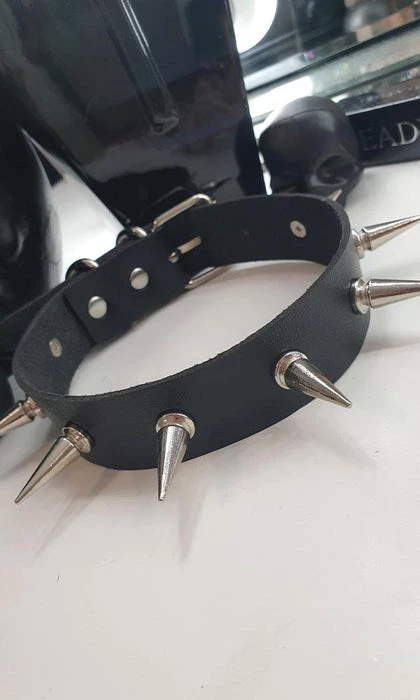 This fierce choker is the ultimate accessory to add some attitude to your everyday look! It features large metal spikes, vegan leather and a buckle closure.