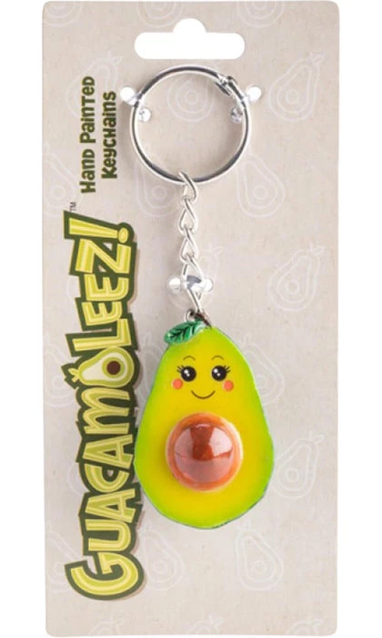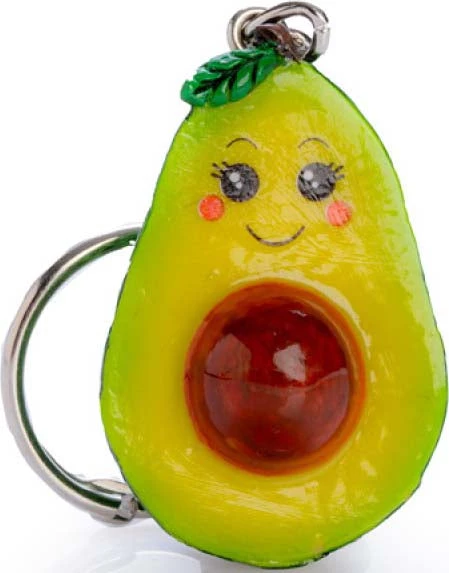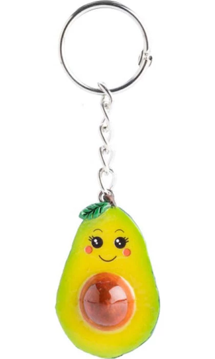 This adorable hand-painted keychain is shaped just like an avocado and features a cute smiling face. Cute and weird, the perfect way to express your personal style!