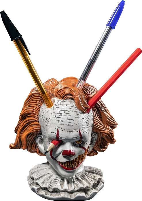 Now you can safely store your pens and terrify anyone who enters your office at the same time with the Pennywise Head Pen Holder, featuring the Dancing Clown as he appeared in the the hit horror filmΒ IT,Β with holes to have three of your favourite pens protruding from the skull of the killer clown.