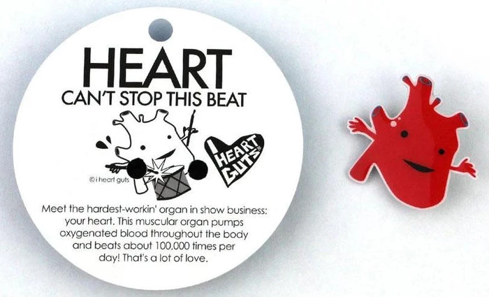 Get pumped with this cute little heart lapel pin! Have a little heart on your jacket or lab coat. This cute gutsy 1.25″ pin is made from durable printed aluminium and comes packed on a card, perfect for gifting!