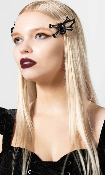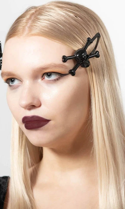 Creepy but cute – the perfect combination! Finish off your favourite dark looksΒ with the ‘Dead Pretty’ hair clip. Featuring a skull and bones design!