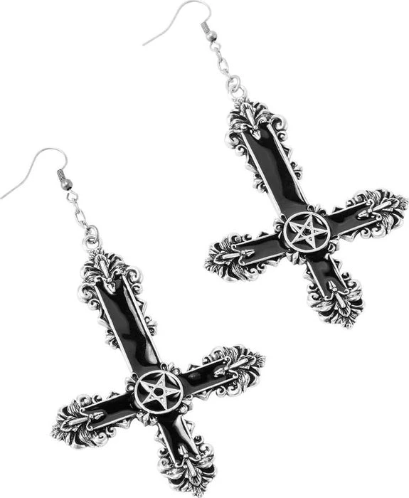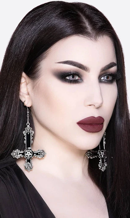 Finish your look in killer style with the ‘Dearly Departed’ earrings; featuring a striking cross pendant with a silver filigree pattern. Easy to wear silver hook finishing – perfect for adding some attitude to any look.