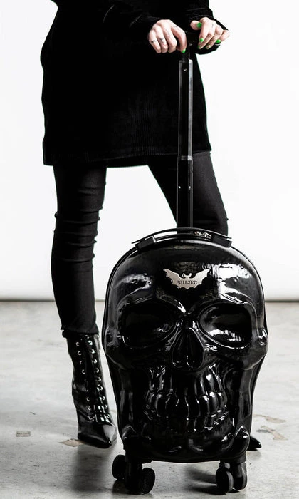 Bring a bit of magic on your adventures out the crypt. The ‘Tomb’ travel suitcase will sure cause a stir on your trips to Transylvania. Hard protective case in a custom skull mold, collapsible handle and four wheels so you can be on a constant roll. All black like your soul! With zip closure, multi compartments and just the right size for your carry-on.