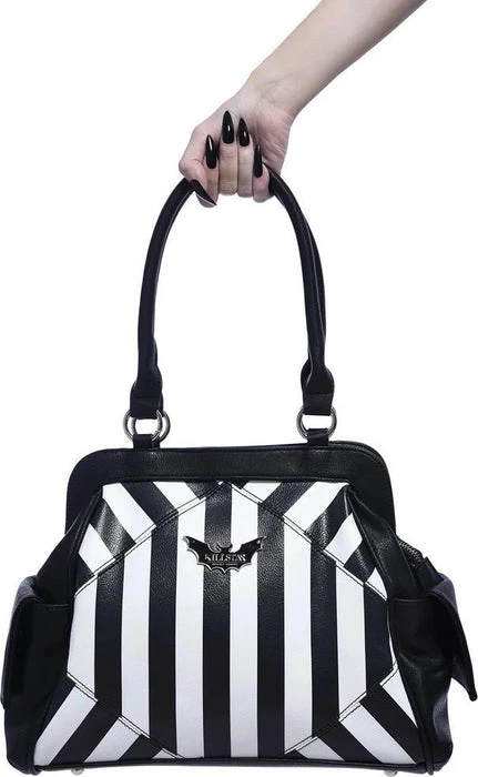 Elevate your handbag game with this statement must-have; ‘Never Trust The Living’ is finished in aΒ faux leather body adorned with a block-stripe print, branded bat plaque, multiple storage pockets, and zip closure. Detachable shoulder strap when you need it and of course fully lined. Halloween is every day!