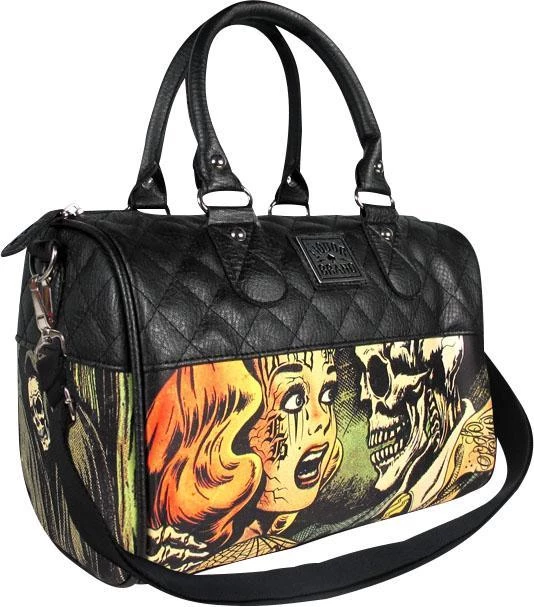 Dance with the dead and have a hell of a time with the Horror Shoulder Bag by Liquorbrand! This quilted Shoulder Bag is perfect for keeping your belongings safe from the undead.