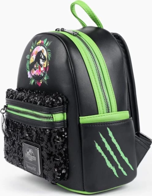The iconic Jurassic Park logo takes its place on the front of this backpack, bursting with botanical flair. The front zipper compartment, adorned with shiny black sequins, features an enamel charm of a raptor claw. On the side pockets, prehistoric claws have left their mark. Debossed detail make them look as if theyβve really been slashed! With plenty of room for your essentials, this backpack is the perfect accessory for exploring any territory!