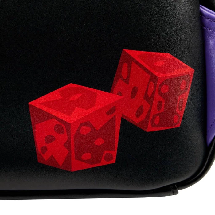 Oogie Boogie has sent his finest trick-or-treaters to carry out his wicked plans. Stay on his good side, or he may send his mischievous henchmen after you! The Loungefly Nightmare Before Christmas Glow Triple Pocket Lock, Shock, and Barrel Oogie Boogie Mini Backpack features Oogie Boogie as he spins on a roulette wheel. Up above, Lock, Shock, and Barrel can be found lurking in some spooky hideaways of Halloween Town. Turn the bag around to find Oogieβs dice, waiting to decide your fate! This frightfully fun accessory glows in the dark and has plenty of room for storing your tricks and treats.