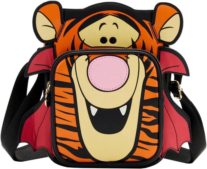 Itβs time for some scary fun, and Tigger has dressed the part! The Winnie the Pooh Tigger Vampire Cosplay Passport Bag takes the shape of everyoneβs favorite bouncy, trouncy friend. On the front of the bag, Tigger wears a red cape and glow-in-the-dark vampire fangs to embrace the spooky spirit of the season. On the back, youβll find his orange and black striped tail. A cute enamel jack-o-lantern charm provides easy access to your tricks and treats, making this bag the perfect accessory for holding candy and other goodies on Halloween. This bag is an officially licensed Disney product.