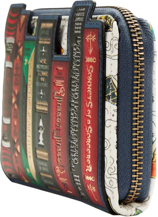 Class is in session! Brush up on your studies of wizardry with the Loungefly Fantastic Beasts Magical Books Zip Around Wallet. On the front of this spellbinding accessory, spines of textbooks display the decorative titles of required reading for Hogwarts students. On the rest of the wallet, magical topics of study float off of book pages in an all-over print. This enchanting zip around wallet will keep your belongings safe on any adventure!