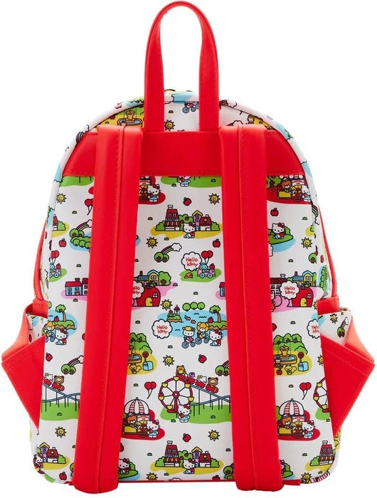 Plan for a fun outing and bring along this Loungefly Sanrio Hello Kitty & Friends Carnival Mini Backpack. An all-over-pattern featuring a carnival with food stands and ridesβsurrounded by neighborhoods, pocket parks, fluffy clouds, rainbows, and smiling sunsβserves as a colorful backdrop for the main attraction: the Ferris wheel. The front pocket features this attraction in bold pops of glitter red, yellow, and pink. Each glitter-detailed bucket contains a cherished Hello Kitty character, including Hello Kitty herself, Tracy, Mimmy, Thomas, Joey & Judy, Fifi, and Rorry. Itβs the perfect accessory for exploring a local carnival or fairβor for turning everyday moments into sweet memories!