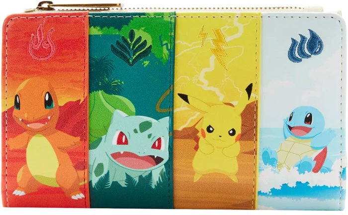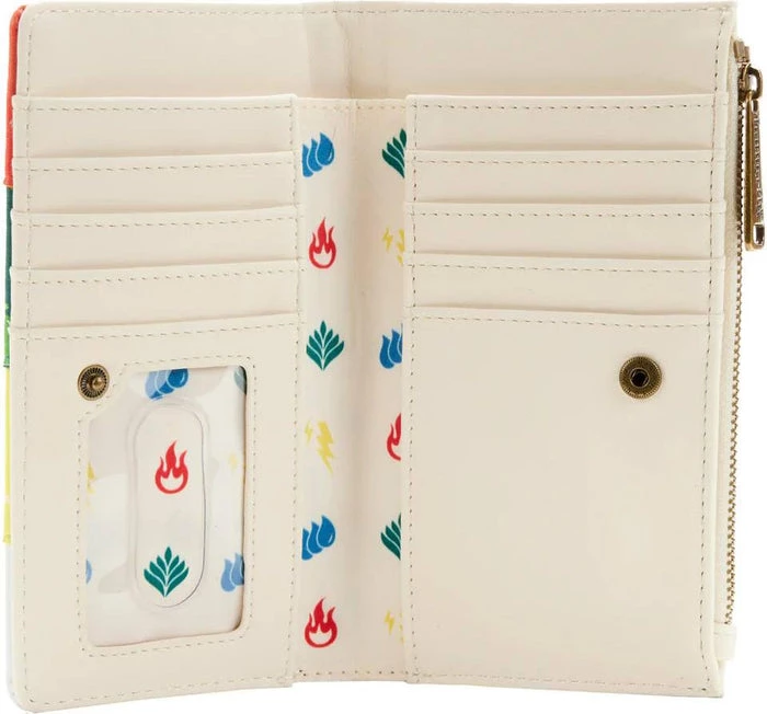 Showcase your training skills with the Loungefly PokΓ©monβ’ Elements Flap Wallet! The front of this wallet displays four unique types of PokΓ©mon: fire, grass, electric, and water. Turn the wallet over and you will find embroidered symbols matching each of the types. With seven slots for holding cards and a clear slot to hold your ID, this wild accessory has plenty of room to carry your gear as you work towards your dream of becoming a Trainer.