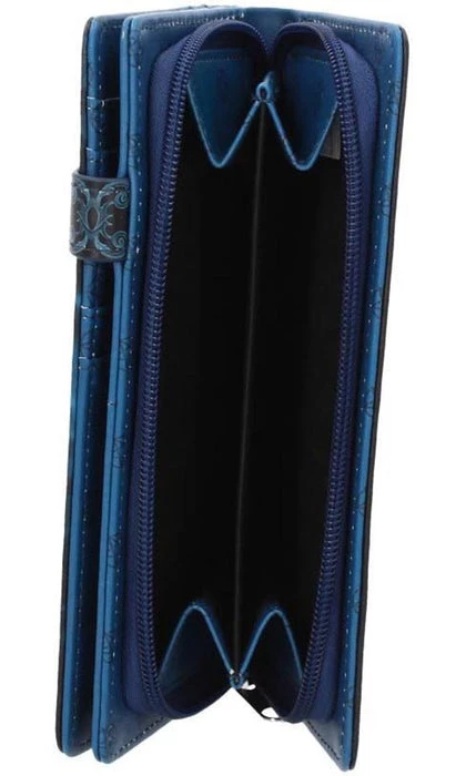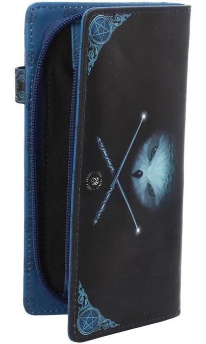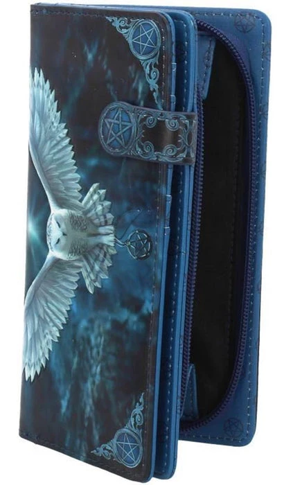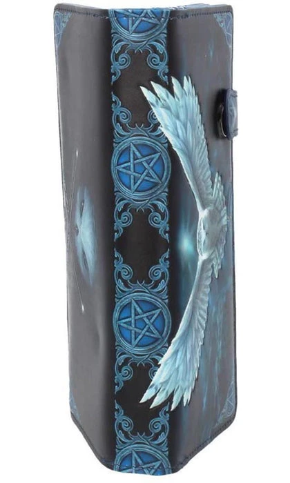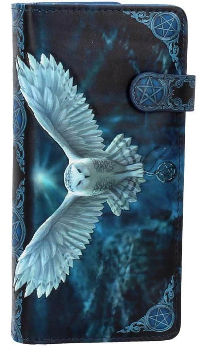 The majestic Awaken Your Magic artwork by Anne Stokes takes pride of place on the front of this embossed Purse. A snowy owl swoops towards you, wings outstretched in full flight. The owl stares at you with an unwavering gaze, as a silver pentagram dangles from her feet. The embossed detailing creates a stunning 3D effect.
