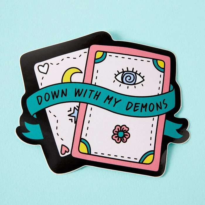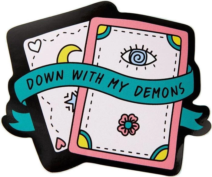 Awesome die cut vinyl sticker, perfect for your laptop, notebooks, refrigerator, car, or wherever!Β FeaturingΒ Down With My Demons tarot cardΒ design, and professionally printed.