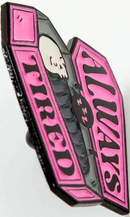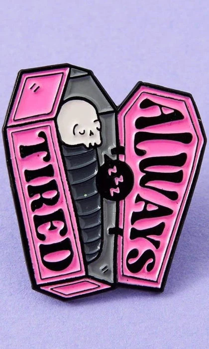 If your life is a constant battle between hitting the snooze button and ‘I’ll sleep when I’m dead,’ this pin was quite literally made for you. NGL, that coffin looks pretty damn cosyโฆ