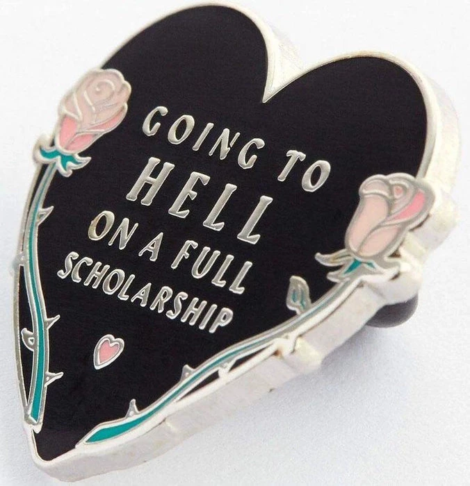 Hard enamel pin with Punky Pins logo on reverse.
