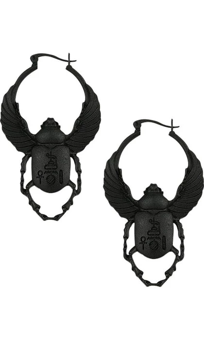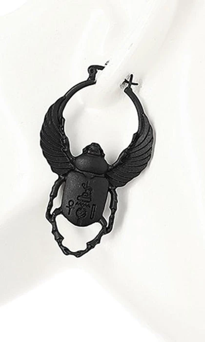 TheΒ Scarab Earrings by Restyle are the perfect dark and beautiful addition to complete any outfit. These earrings feature delicate blackΒ Egyptian scarabsΒ withΒ hoop and clip closure.
