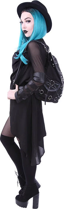 This awesome black backpack is super aesthetically pleasing with its geometric lines and o-rings.