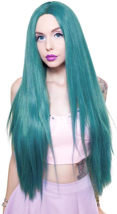 Release your inner mermaid in the Yaki Straight Turquoise Mix 32 Inch Rockstar Wig.