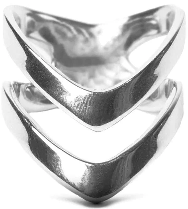 A magical Stainless Steel Ring with a double chevron and a Mirror Polish finish.