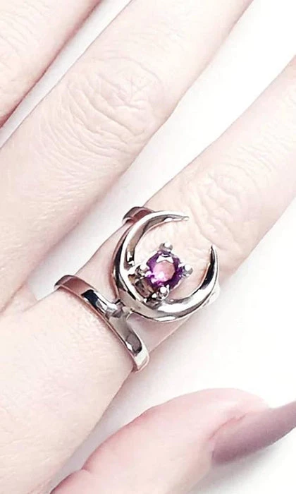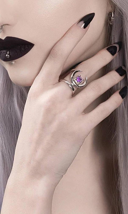A magical Stainless Steel Ring with a Mirror Polish finish, adorned with an enchanting Lavender Gemstone.