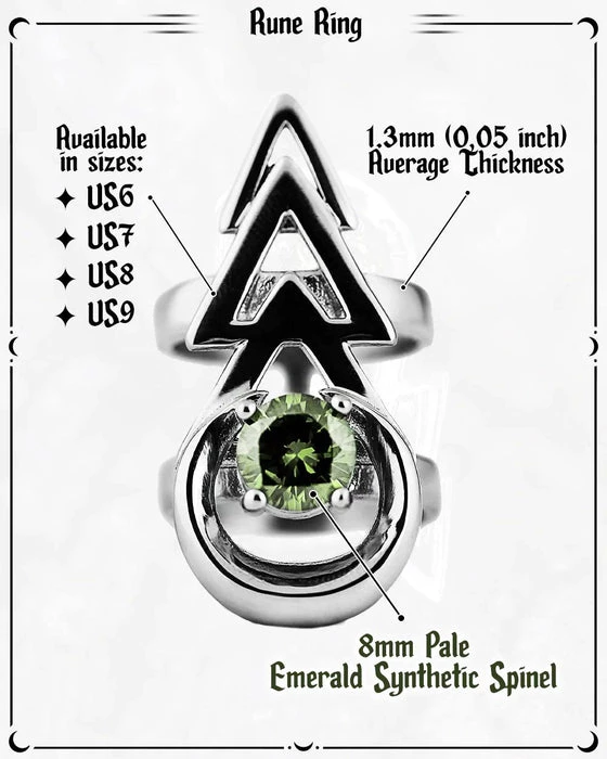 A magical Stainless Steel Ring with a Mirror Polish finish, decorated with mystical Pale Emerald Green Gemstone