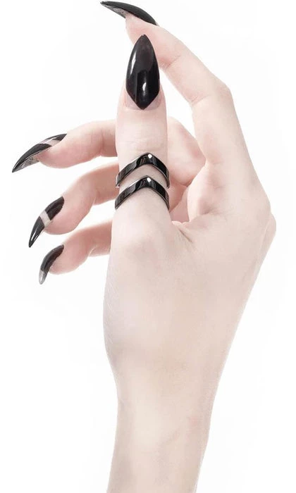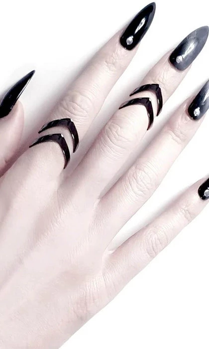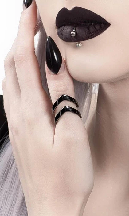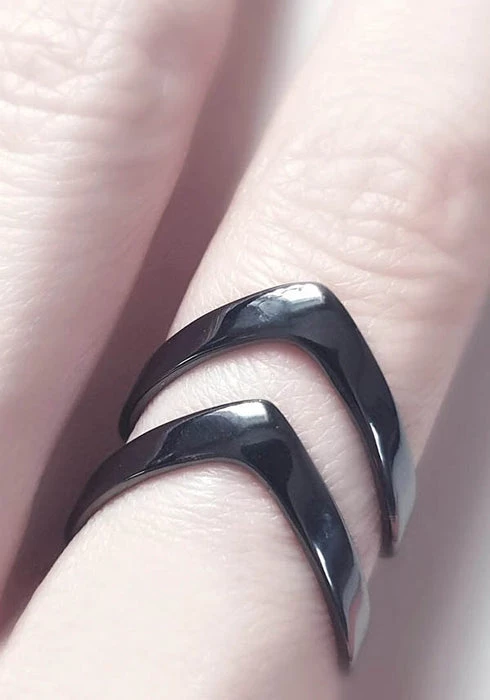 A Striking Sterling Silver Ring with 18 Karat Black Gold Plating and a refined double chevron curved arrow-tip.