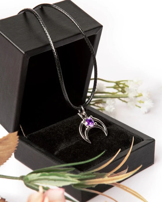 A Magical Moon Choker with a hollow crescent to let you carry the nightβs light, adorned with an Amethyst Cubic Zirconia.