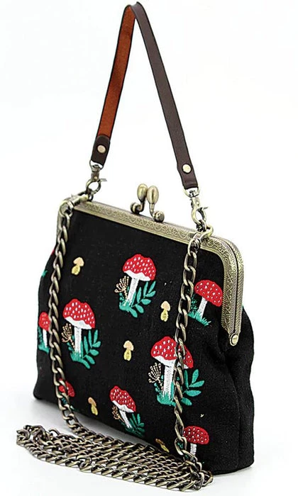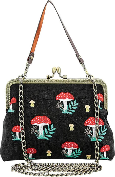– Two Detachable Straps; chain strap with a shoulder drop of 24in and a vinyl strap with a shoulder drop of 6in.