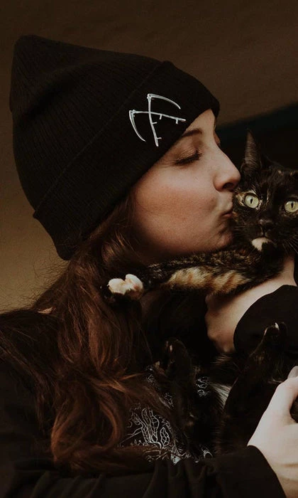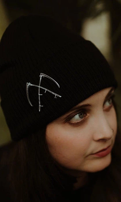 Each beanie is complete with a two inch scythe pin that can be worn anywhere you desire on the beanie.