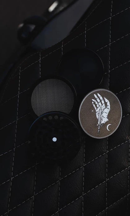 The brand new 4 piece metal grinder with the blood oath designΒ on front.Β