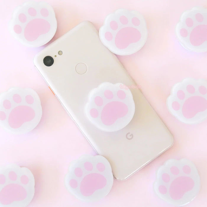 A cute phone grip of a grabby little cat paw. A helping hand in holding up your phone!